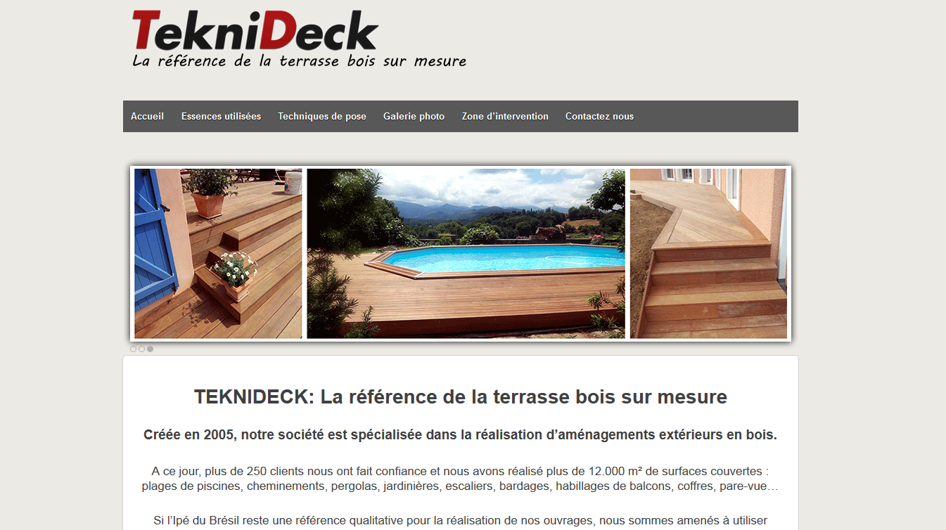 TEKNIDECK: La référence de la terrasse bois sur mesure (http://www.creasite-france.com/achat-tronconneuse-stihl/) Créée en 2005, notre société est spécialisée dans la réalisation d’aménagements extérieurs en bois.